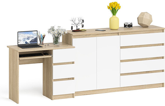 Наименование производителя | Мори Стол компьютерный МС-6 правый + Комод МК1600.1, цвет дуб сонома/белый, ШхГхВ 250,4х50х94 см., выдвижные ящики справа, НЕ универсальная сборка |