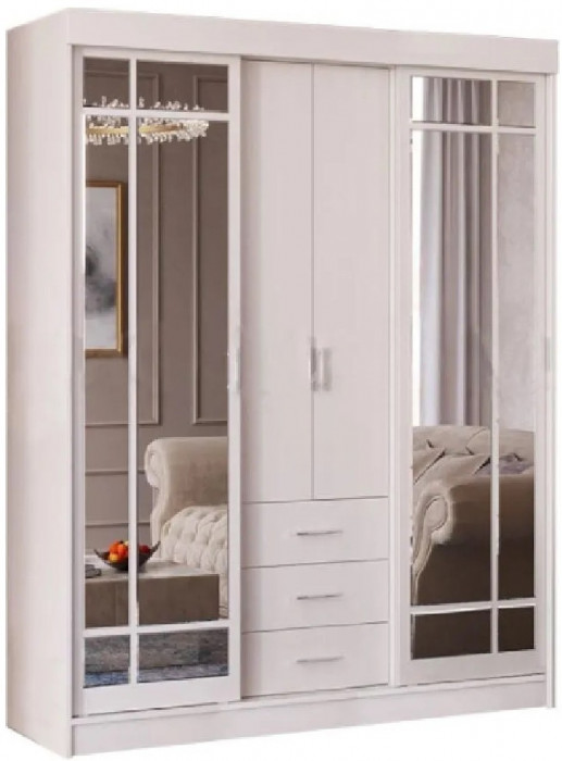 Шкаф-купе Маэстро — это современная модель для хранения вещей. Изготовлен из ЛДСП. Великолепная стильная модель для вашей квартиры. Два больших зеркала увеличат внутреннее пространство помещения и украсят интерьер.