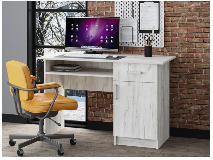 Стол письменный ПС-01 (с дверкой) имеет привычную для большинства людей компоновку — столешница, под которой один выдвижной ящик и тумба с дверцей.